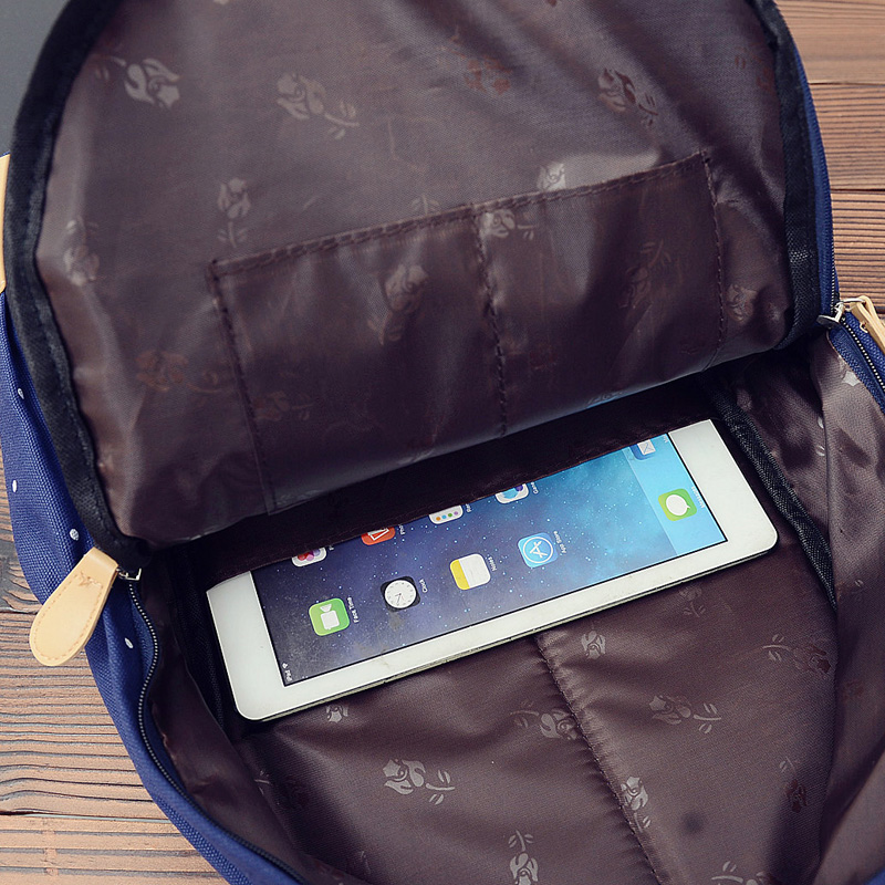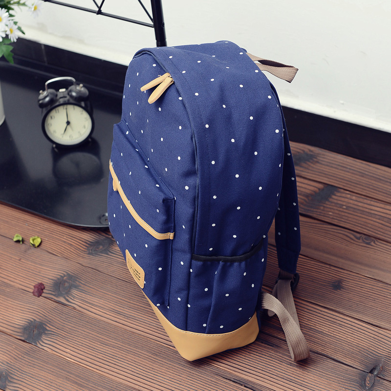/ 新款韓版波點女背包帆布雙肩包日韓女包休閑旅游包小清新學生書包