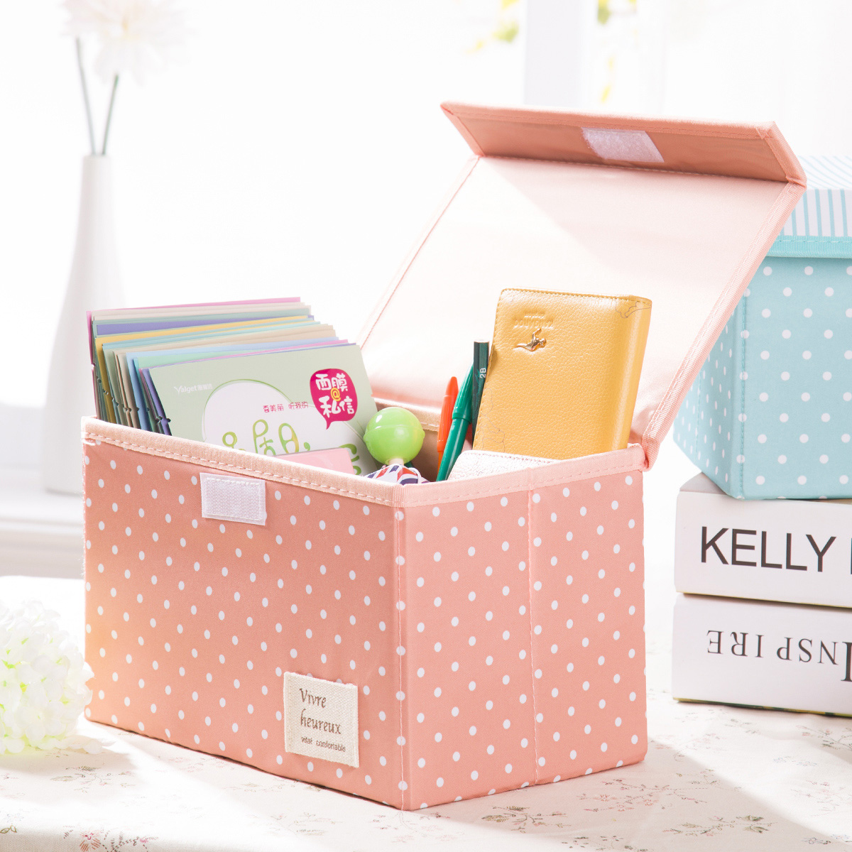 天縱有蓋桌面收納盒 布藝化妝品盒 辦公室收納盒整理盒 雜物盒箱