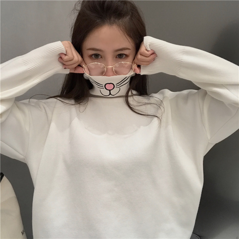 / 貓咪搞怪刺繡高領內搭基礎款針織衫毛衣女秋冬2018新款打底上衣潮