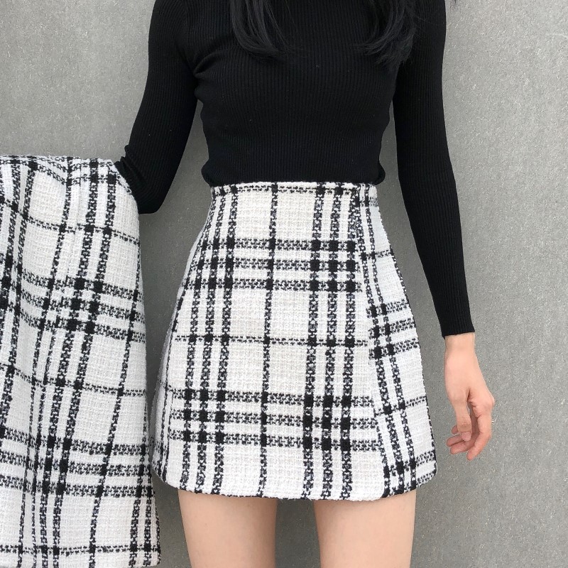 白色格子外套+半身裙|黑色格子外套+半身裙|白色網紗|黑色網紗|杏色針織衫|黑色針織衫